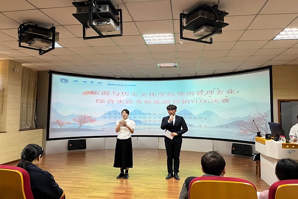 为了展示实践教学成果,10月10日和12日,酒店管理专业和旅游管理专业联合学院团委、学生党支部和教工党支部,分别举办专业认知实践主题推文决赛和专业综合实践考察旅游营销VLOG决赛。主题推文比赛中,126位学生分为21组分别聚焦酒店管理制度、品牌文化、服务质量、文化设计及酒店与民宿的异同等完成不同主题微信推文的撰写和推广,决赛中进行PPT汇报和小组才艺展示。旅游营销VLOG比赛中172名同学分为17组完成不同主题旅游营销VLOG制作及在微信视频号上的宣传推广,决赛现场通过PPT汇报、旅游营销VLOG展播、才艺表演三个环节进行展示。
