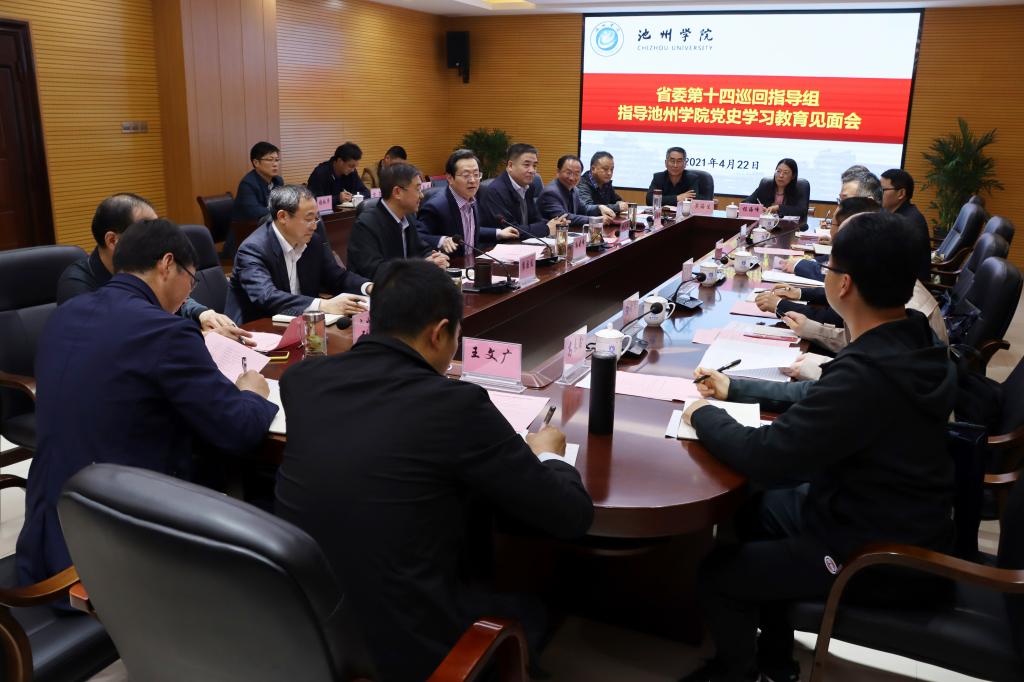 根据省委党史学习教育统一部署安排,4月22日,党史学习教育省委第十四巡回指导组深入PP电子督查指导党史学习教育开展情况。安庆师范大学党委书记、指导组组长许继荣出席会议并讲话。校党委书记孙晓峰主持会议。第十四巡回指导组副组长王国雨及指导组全体成员,校领导柳友荣、崔国发、王延寿、汪海、阳光宁、汪贤才出席会议。