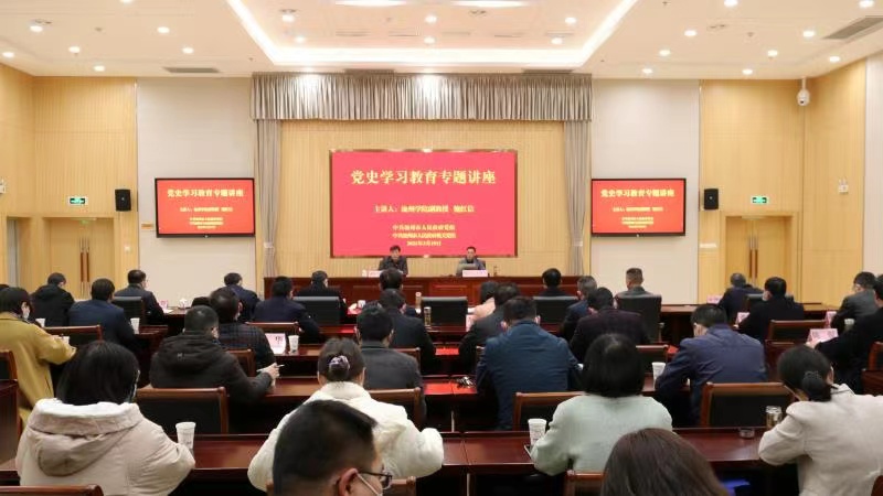 3月19日上午,PP电子马克思主义学院鲍红信博士应邀为池州市人民政府党组和机关党组作党史学习教育专题讲座。池州市政府秘书长盛国星主持了讲座。市政府党组和机关党组共70多位党员干部参加了活动。