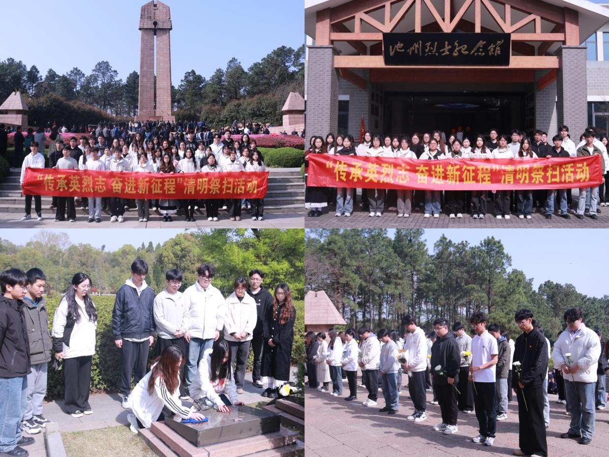 组织开展“传承英烈志奋进新征程”清明祭扫活动。4月2日上午,校团学骨干、青马班学员以及各二级学院学生代表共60余人前往池州市烈士陵园开展“传承英烈志奋进新征程”清明祭扫活动。活动现场,全体师生整齐列队,肃立默哀。学生代表向革命先烈敬献花篮并仔细擦拭墓碑,寄托对先烈的无限敬仰和沉痛哀思。在庄严肃穆的烈士纪念碑前,学生们庄严宣誓,表示将继承先烈遗志,坚定理想信念,以实际行动践行初心使命,让红色基因、革命薪火代代相传。