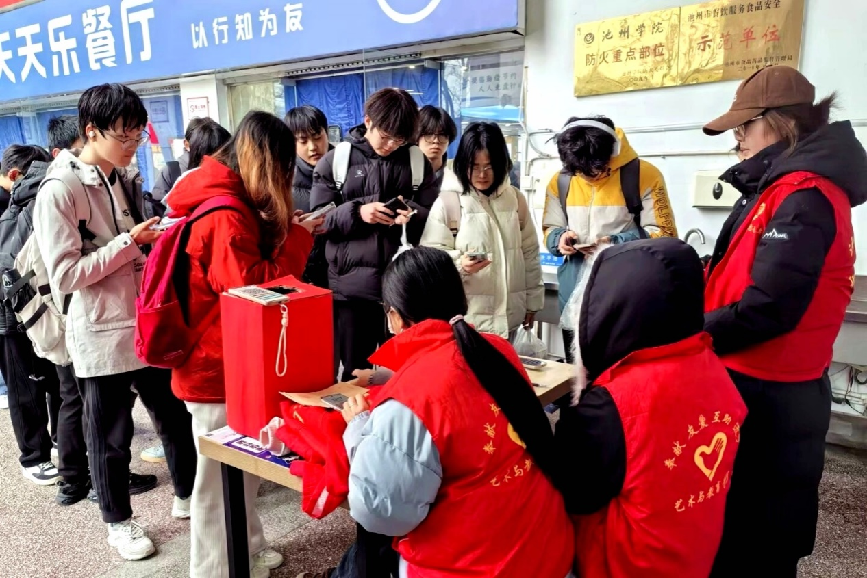 校学生会紧扣争做道德文明学生、争做交通文明学生、争做课堂文明学生、争做卫生文明学生、争做网络文明学生和共创校园文明之风的“五争一创”主线,积极开展“我为同学做实事”系列活动,推动志愿服务融入日常、化作经常。池小红·青心守安志愿服务队深入教室、寝室及学生活动场所,广泛宣传电信网络诈骗防范、消防安全、交通安全、禁毒等知识,提升同学们的安全防范意识。艺术与教育学院青协分会在一食堂门口设立“心灵互助”解忧小邮箱,暖心服务为同学们排忧解难,拉近同学之间“心距离”,让温暖传递“无界限”。