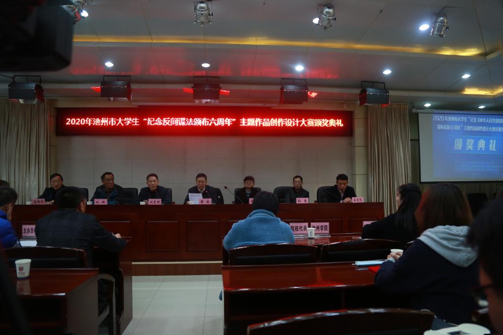 11月30日下午,由池州市法治宣传教育工作领导小组办公室主办,PP电子游戏网站、池州职业技术学院、安徽卫生健康职业学院承办,池州市广告协会协办的2020年池州市大学生“纪念反间谍法颁布六周年”主题作品创作设计大赛颁奖典礼在PP电子行政南二楼会议室举行。