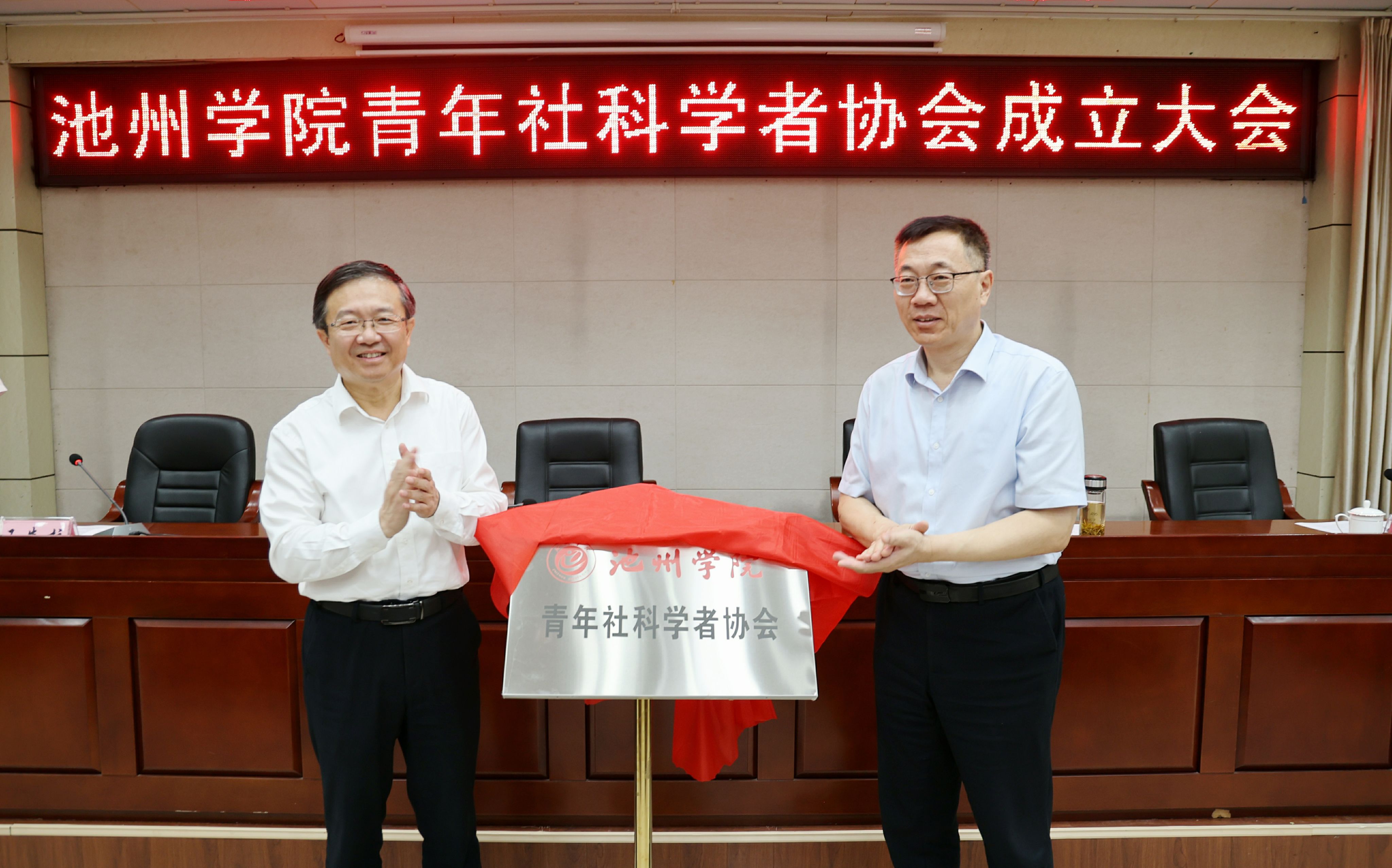 李兵与王峰共同为PP电子游戏网站青年社科学者协会揭牌。方鸣代表省社科界青年学者协会宣读贺信。
