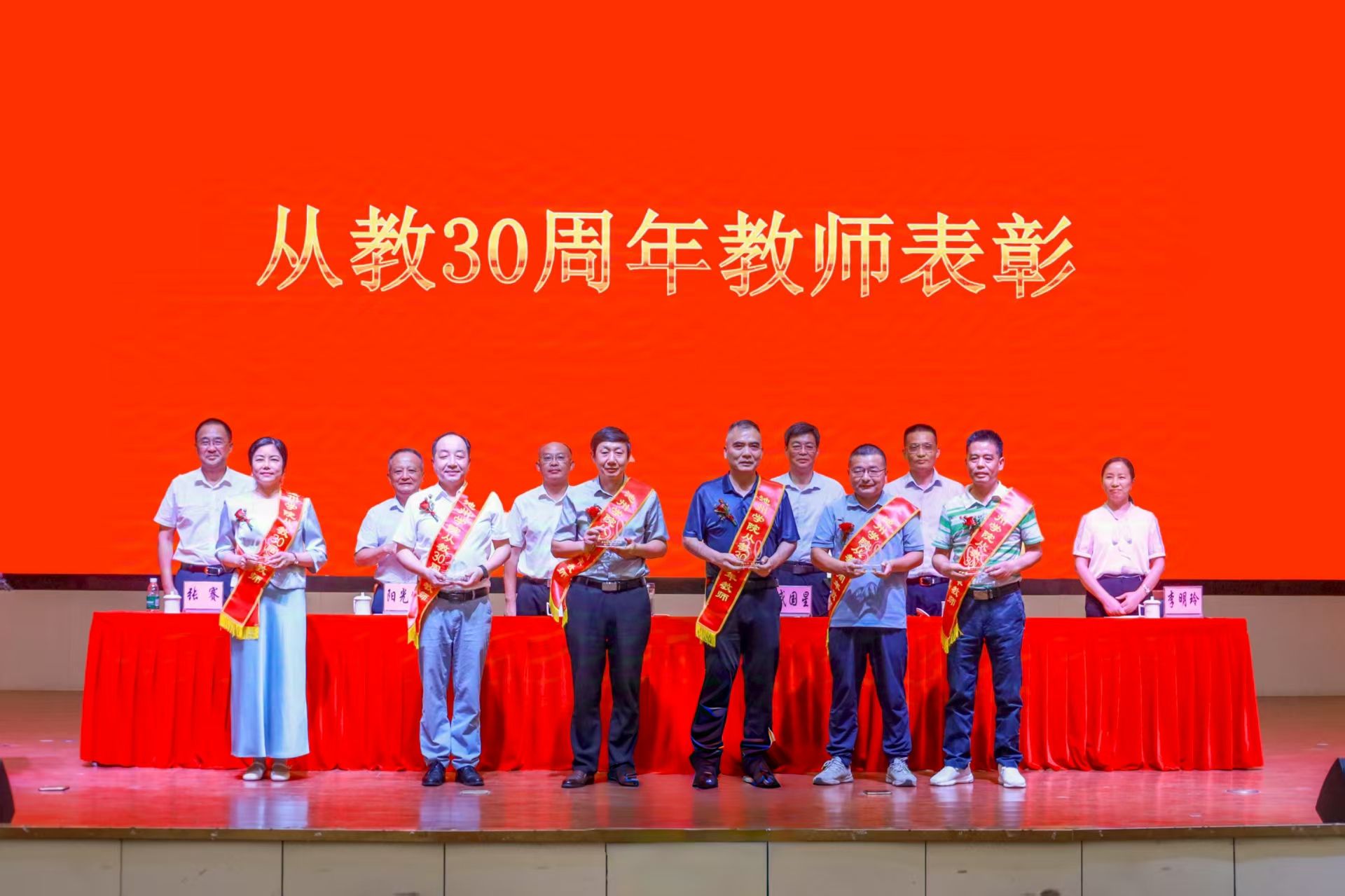 校党委委员、副院长阳光宁宣读表彰名单。大会对在党建、育人、科研、教学、引才及学生工作方面取得突出成绩的个人和集体进行表彰,为从教30周年的优秀教师颁发荣誉证书,致敬他们长期坚守教育岗位的奉献精神。
