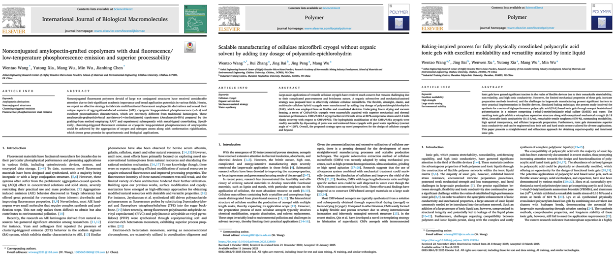 王文韬以PP电子游戏网站第一单位第一作者在中科院一区International Journal of Biological Macromolecules和中科院二区Polymer上连续发表三篇高水平科研论文
