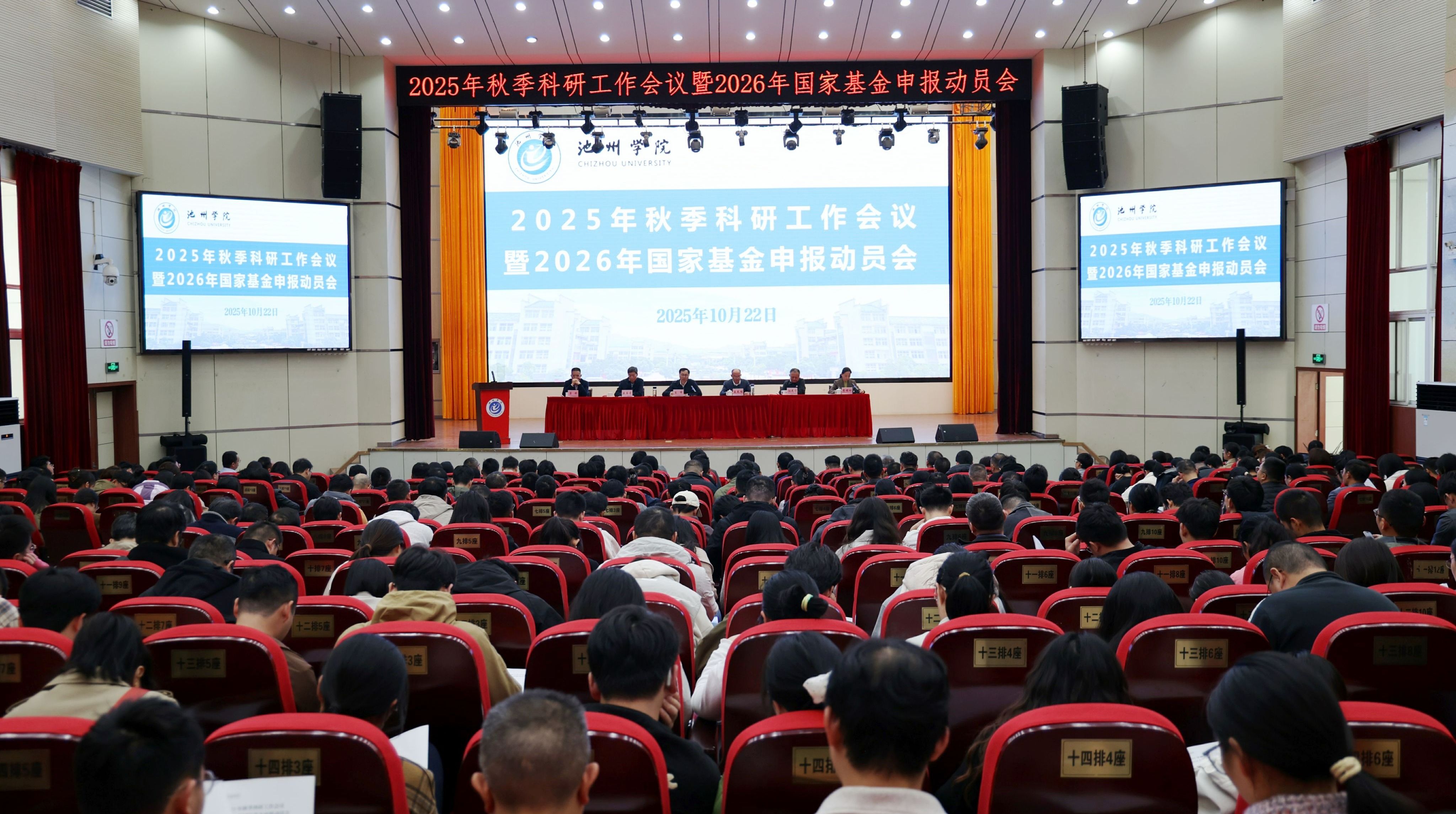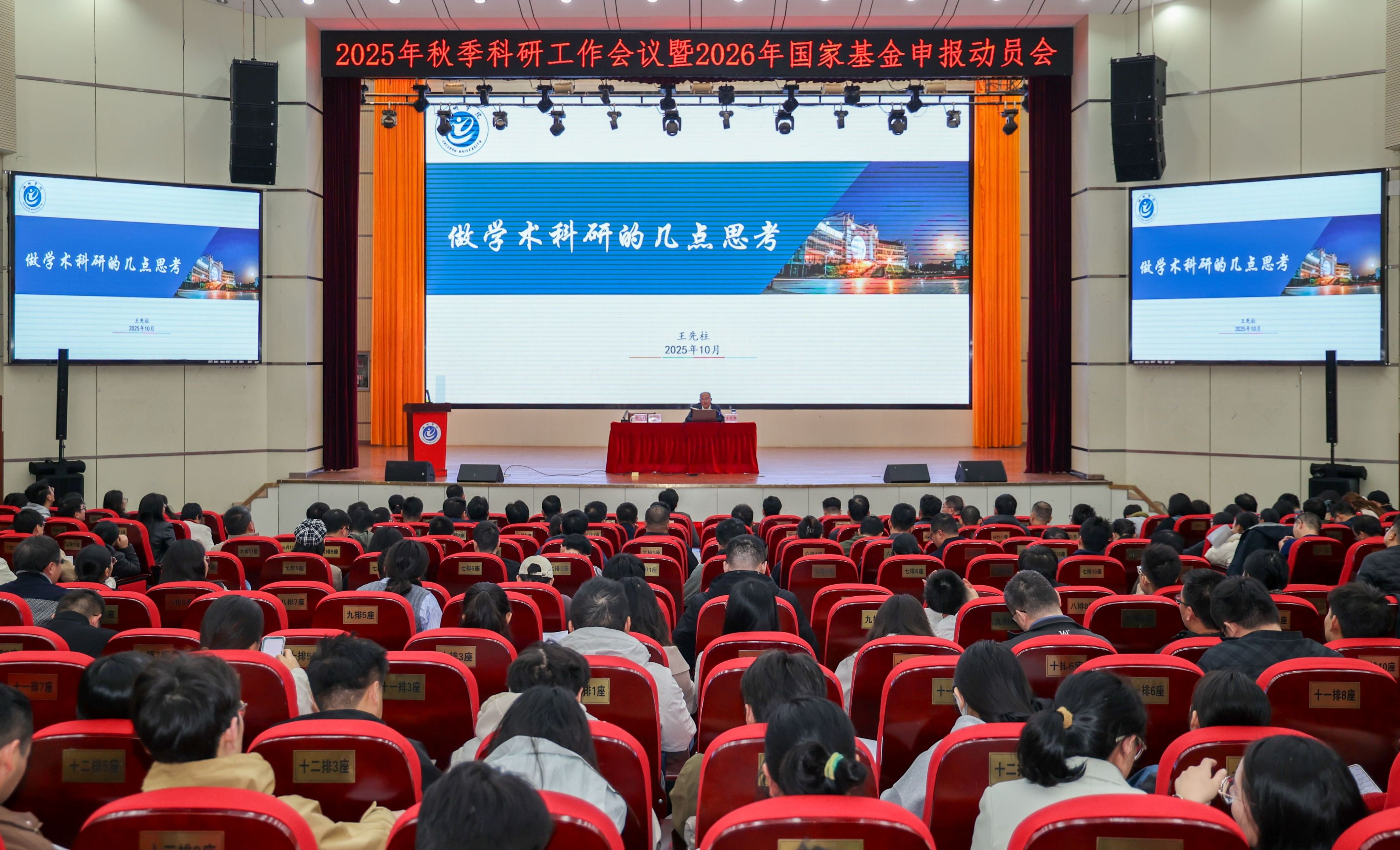10月22日下午,学校在博古楼礼堂召开2025年秋季科研工作会议暨2026年国家基金申报动员会。校党委书记王峰出席会议并讲话,党委副书记、院长王先柱作辅导报告,党委副书记盛国星,党委委员、副院长阳光宁、吕刚、李明玲出席会议。