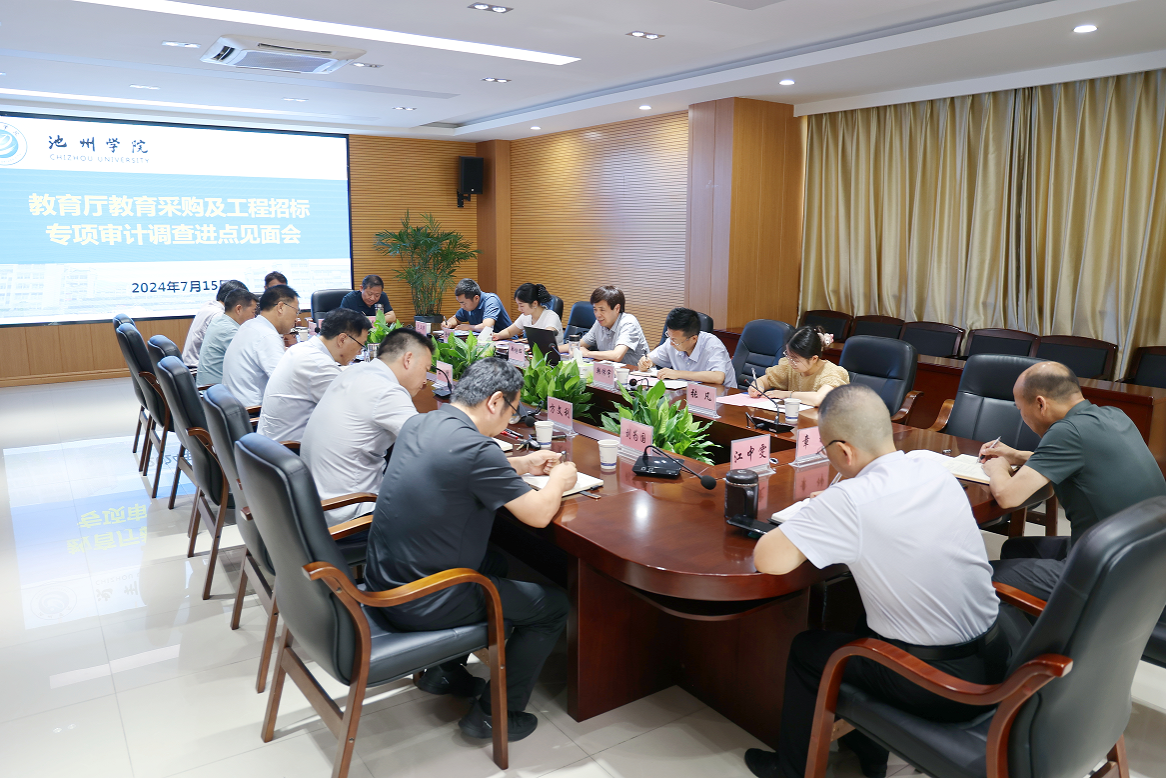 7月15日上午,省教育厅审计调查组进驻PP电子开展教育采购及工程招投标专项审计调查工作。进点见面会在行政北二楼会议室召开,院党委书记王峰主持,审计调查组组长郑继辉、副组长韩传宇和审计组成员、校领导张赛出席会议。